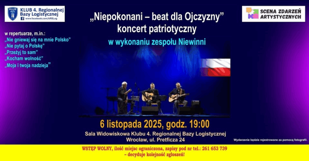 W klubie przy ul. Pretficza 24 we Wrocławiu w dniu 6 listopada br. będzie koncert: